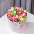 Розовые розы и клубника в шоколаде