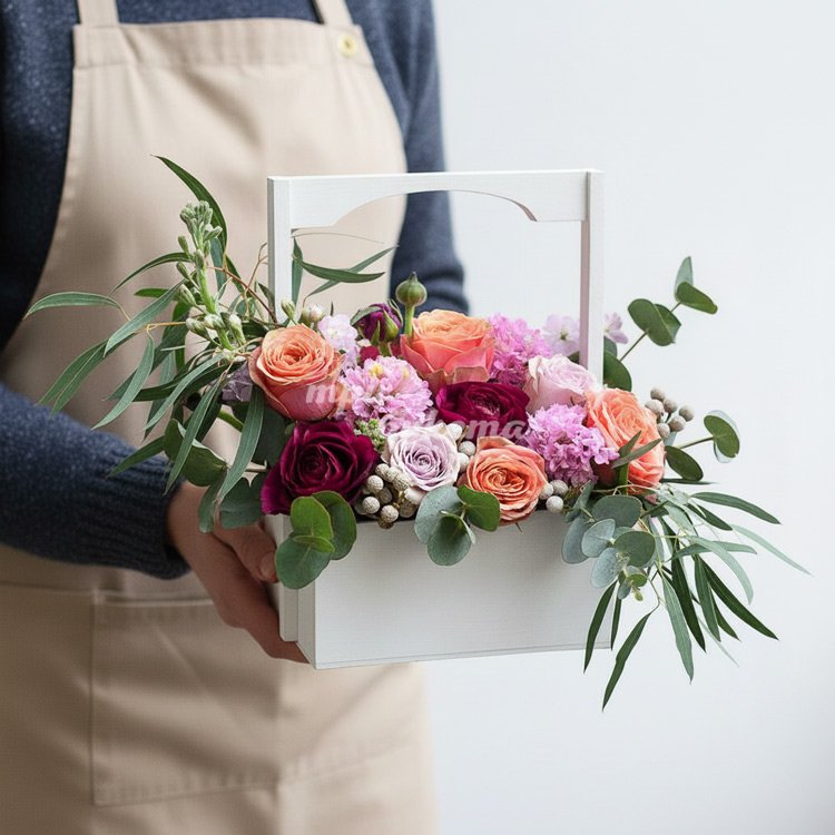 Розы и маттиола в ящичке
