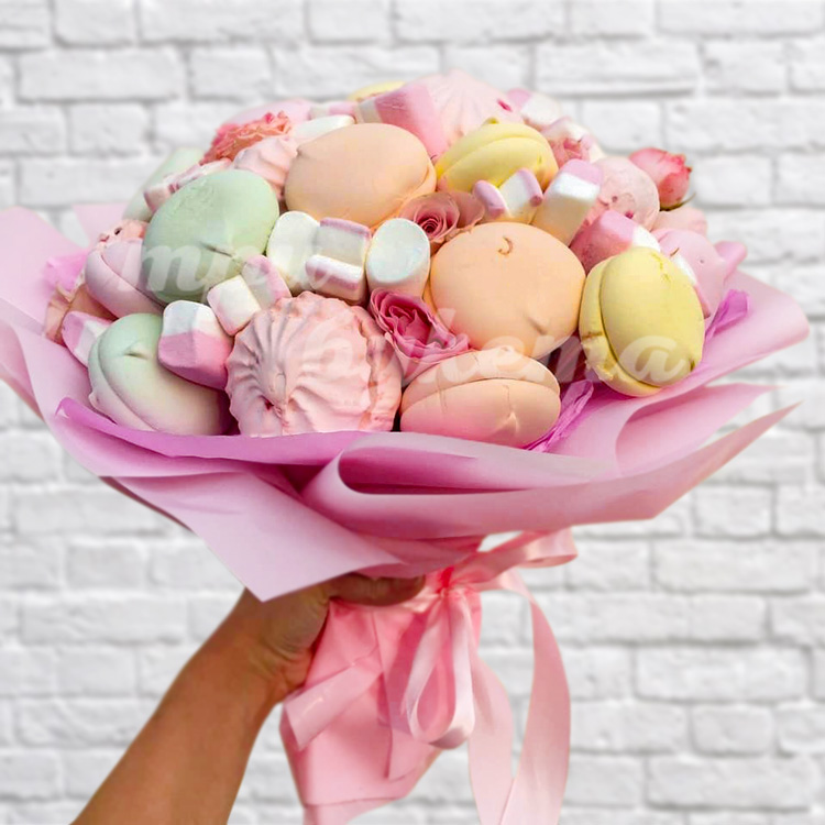 Сладкий букет из зефира и роз