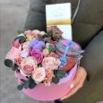 Яркая коробка с розами и статицей