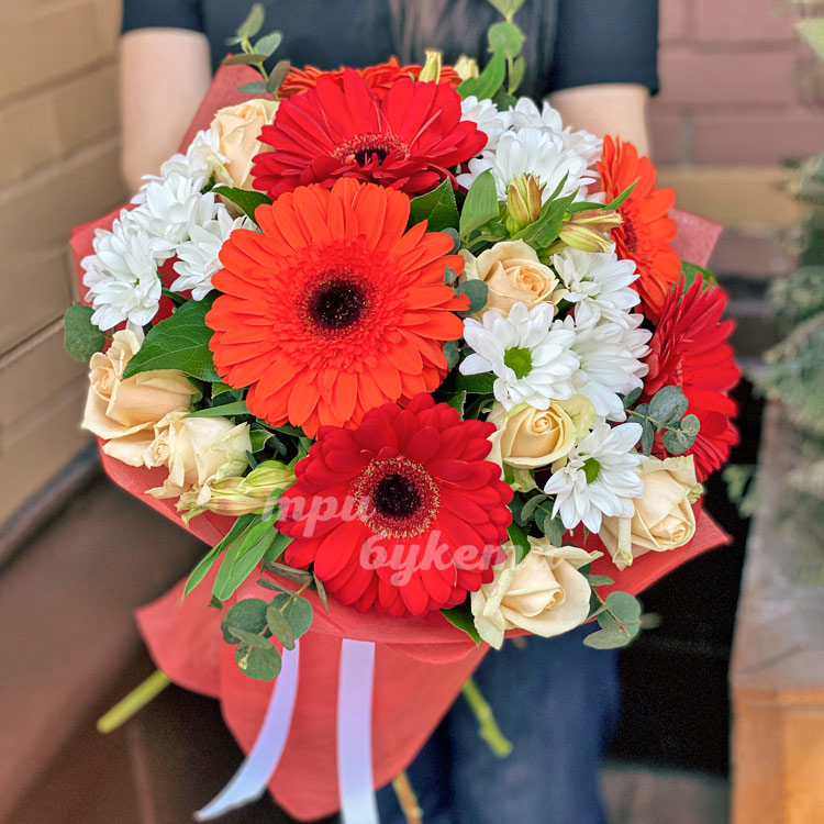 Яркие герберы с хризантемами