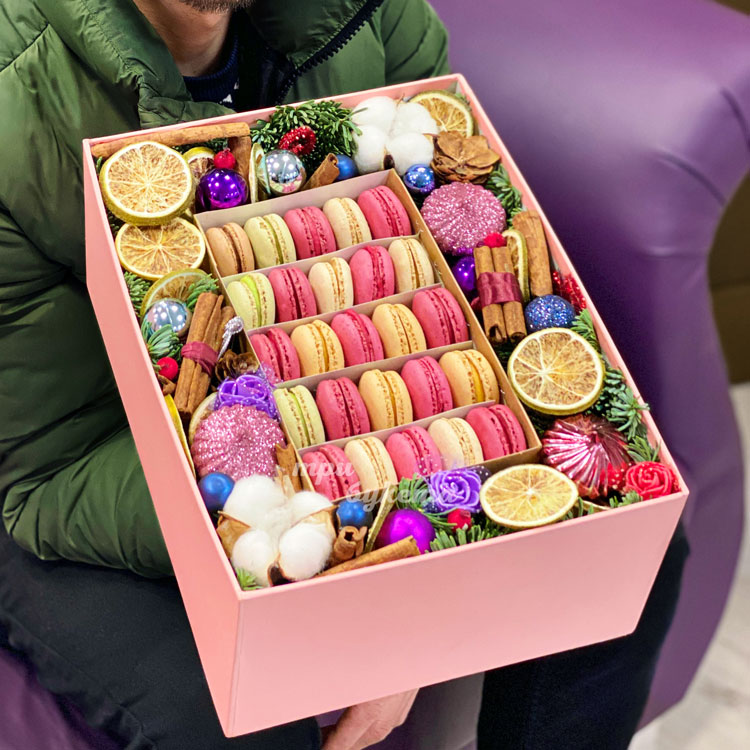 Яркий новогодний подарок с макарунами
